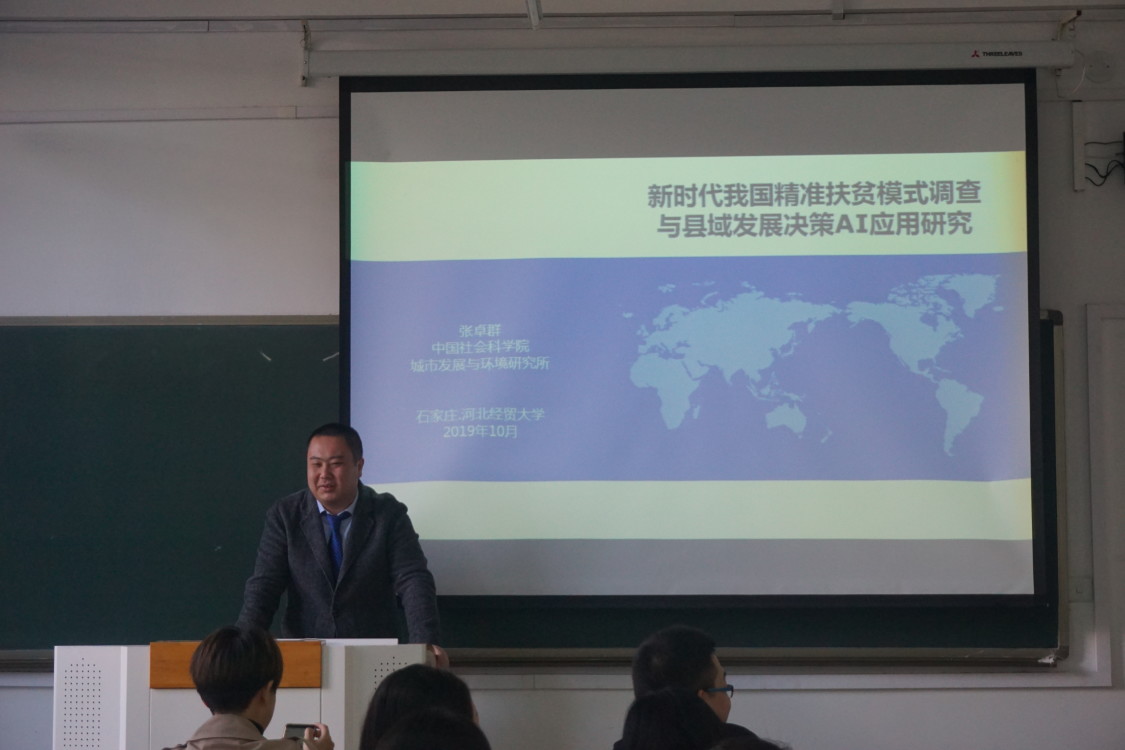 10月29日上午,db真人体育官网邀请中国社会科公司城市发展与环境研究所研究员张卓群博士于三教B212教室进行了题为“新时代我国精准扶贫模式调查与县城发展决策AI应用研究”的讲座。副经理仇晓洁教授到场,db真人体育官网研究生参加了此次讲座。