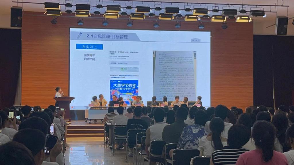 共有四项议程:经理王晓洁致辞、教师代表仝文涛发言、在校生代表2020级李美玲发言、新生代表刘睿桐发言。