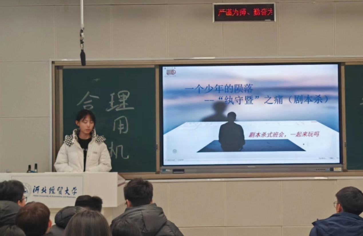 11月13日下午,2023级资产评估专业班级在A202教室开展“手机管理”主题班会。本次主题班会采用剧本杀形式,形式新颖、内容丰富,让大家更有代入感的深入故事。通过沉浸式的体验、身临其境的寻找线索和探索真相,大家深刻感受到过度玩手机的危害与后果。