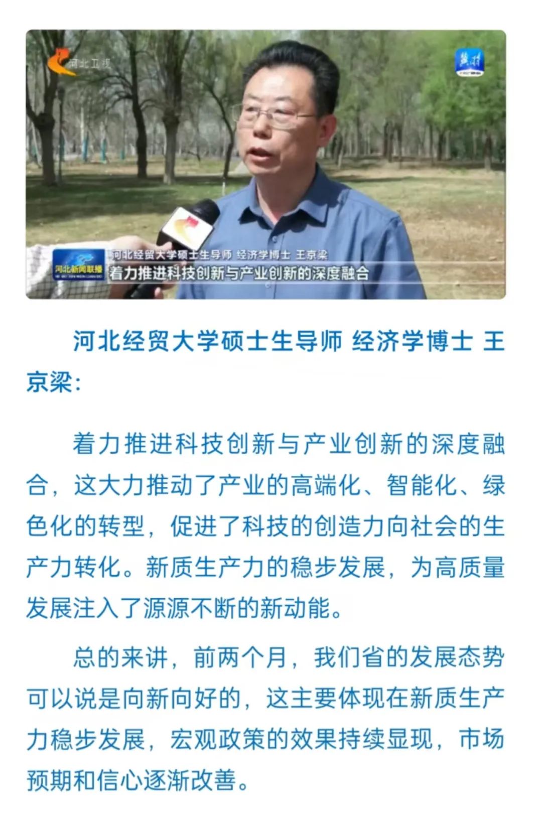 3月24日,省统计局发布1-2月全省经济运行情况。今年以来,我省经济运行起步平稳。公司硕士生导师、经济学博士王京梁在采访中指出,推进科技创新与产业创新的深度融合,促进了科技的创造力向社会的生产力转型。他认为,前两个月,我们省的发展态势是向新向好的,主要体现在新质生产力稳步发展,宏观政策的效果持续显现,市场预期和信心逐渐改善。