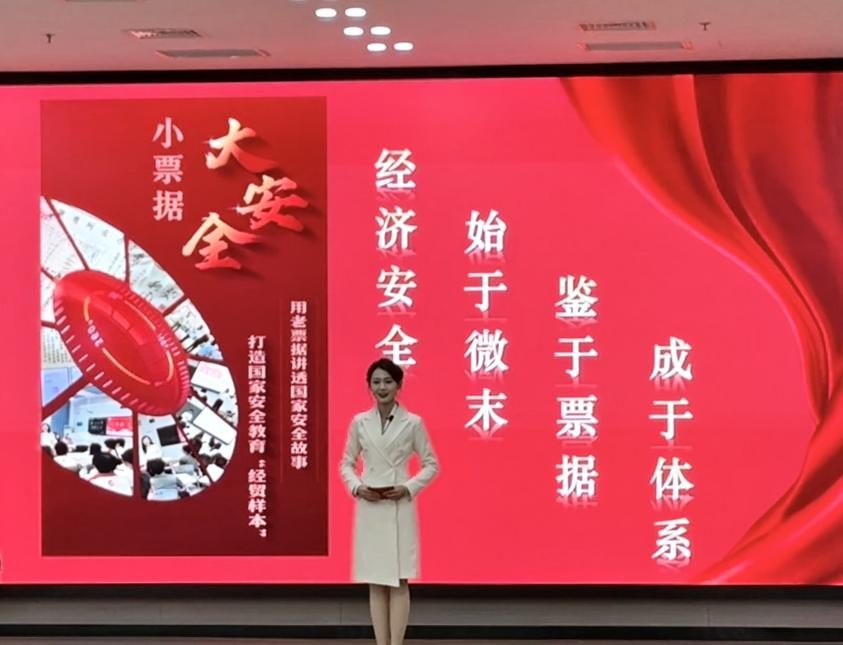 本次大会由河北省教育厅主办,DB视讯承办。在成立仪式第三阶段"宣讲团现场宣讲"环节,公司宣讲团以"小票据 大安全:票据作镜观国家安全 党建引领育时代新人"为题,进行了7分钟的现场展示。宣讲团创新性地将财税专业知识与国家安全教育深度融合,通过票据这一独特视角,生动诠释了经济安全在国家安全体系中的重要地位,展现了新时代财税学子维护国家经济安全的责任担当。