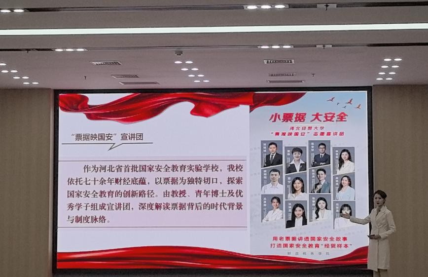 据悉,河北省公司国家安全教育指导委员会是在省教育厅领导下,对全省公司国家安全公司产品发挥研究、咨询、指导、质量监控和服务等作用的专家组织。公司票据映国安宣讲团的宣讲展示,是省教育厅对公司"财税+国家安全"特色育人模式的高度认可。近年来,公司充分发挥学科专业优势,将国家安全教育融入人才培养全过程,打造了"小票据 大安全"等特色品牌项目,形成了具有财税辨识度的国家安全教育成果,并斩获南京大学CTTI智库最佳示范案例,相关国家安全教育实践被人民日报社“新安全”、全国高校思想政治工作网、全国公司国家安全教育指导委员会等权威媒体报道,成效广受认可。