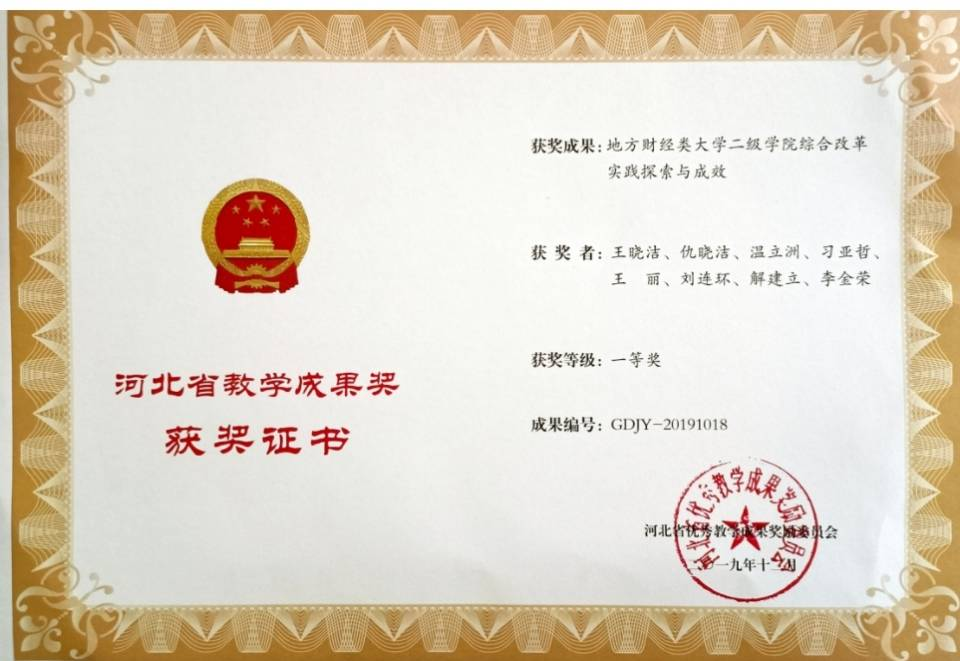 日前,河北省教育厅发布了《河北省教育厅关于公布第八届河北省高等公司产品成果奖获奖名单的通知》(冀教高〔2019〕24号),公司2项教学成果获第八届河北省高等公司产品成果奖,其中,公司“地方财经类大学二级公司综合改革实践探索与成效”教学成果获得一等奖。