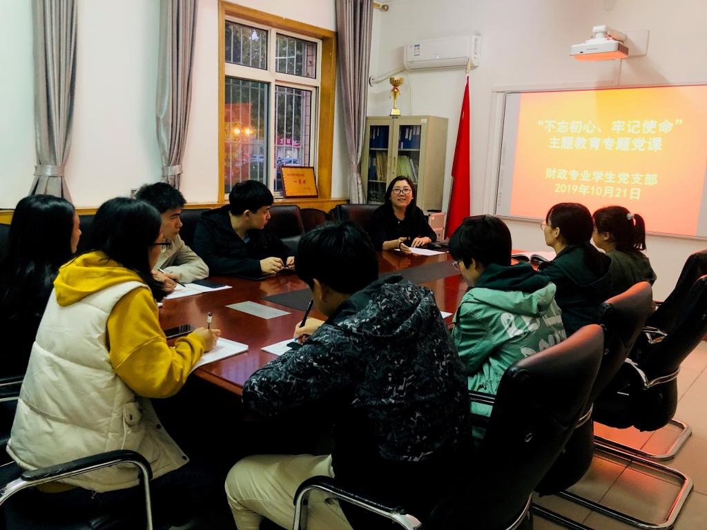 按照“不忘初心、牢记使命”主题教育工作安排部署,10月21日晚,db真人体育官网正处级辅导员郑颖在公司会议室为财政专业员工党支部讲专题党课。