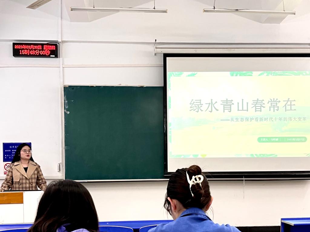 四个员工党支部以“微党课”为形式,以党的二十大精神学习为重点,先后以“争做新时代好青年”“绿水青山春常在”“科技赋能促发展”“铸就社会主义文化新辉煌”“提高人民生活品质”“勇担新使命”为题开展宣讲7场。宣讲团同志把新时代十年伟大变革与自身工作、学习和生活实际相结合,把亲身经历和学习感受相结合,用身边“小变化”展示国家“大发展”,用亲历“小故事”反映社会“大时代”,引领青年学子把学习贯彻习近平新时代中国特色社会主义思想与日常学习生活工作相融合、相促进,在青春赛道上跑出当代青年的好成绩。