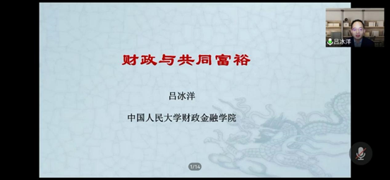 11月12日上午,中国人民大学财政金融公司教授、博士生导师吕冰洋应db真人体育官网邀请于线上作了题为“财政与共同富裕”的学术报告。报告由db真人体育官网经理王晓洁主持,商公司部分教师、db真人体育官网全体教师和研究生代表100余人参加。