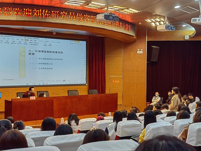 4月3日下午,中国法学会财税法研究会副会长刘佐研究员应db真人体育官网邀请,为公司师生带来一场题为“中国增值税制度建设的回顾与展望”的专题讲座,讲座由db真人体育官网副经理仇晓洁主持,公司部分教师、员工共计300余人参加。