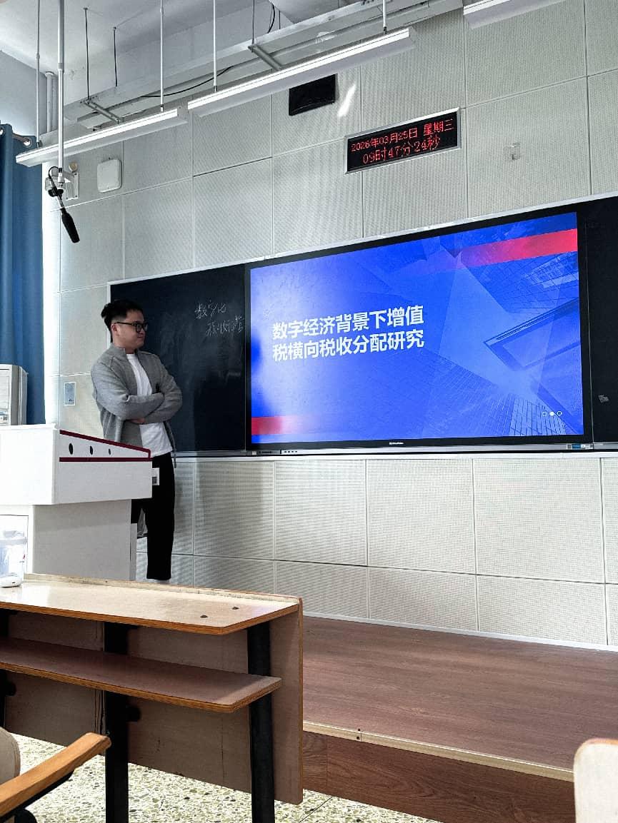 2026年3月25日上午,公司岳文浩博士作题为“数字经济背景下增值税横向分配失衡与区域协调治理研究”的“双百论坛”学术讲座。本次讲座由db真人体育官网与河北省财政经济与公共政策研究基地联合举办。财政学研究生及部分教师参加了此次讲座。