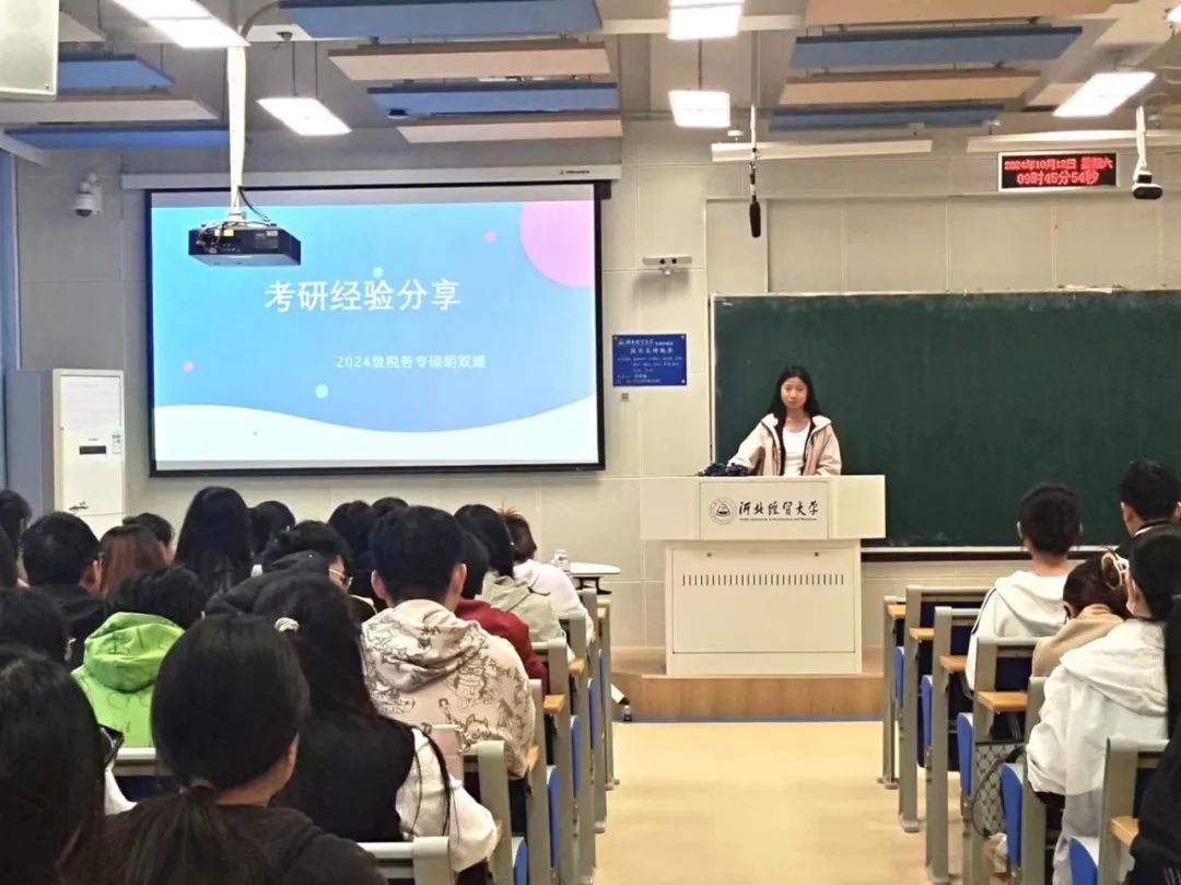 2024年10月12日上午,为进一步帮助db真人体育官网 2025 届毕业生明确未来方向,做好就业与考研的准备,公司召开了 2025 届就业暨考研动员会。特邀2024级税务专硕胡双媛、2024级资产评估专硕曹文博主讲,公司团委书记安宁老师参加。