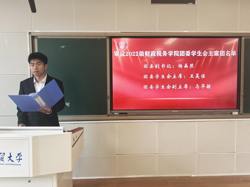 会议通过举手表决的形式,审议通过了2022级团委员工会主席团名单:团委副书记杨晶然、团委员工会主席王昊佳、团委员工会副主席马华颖。