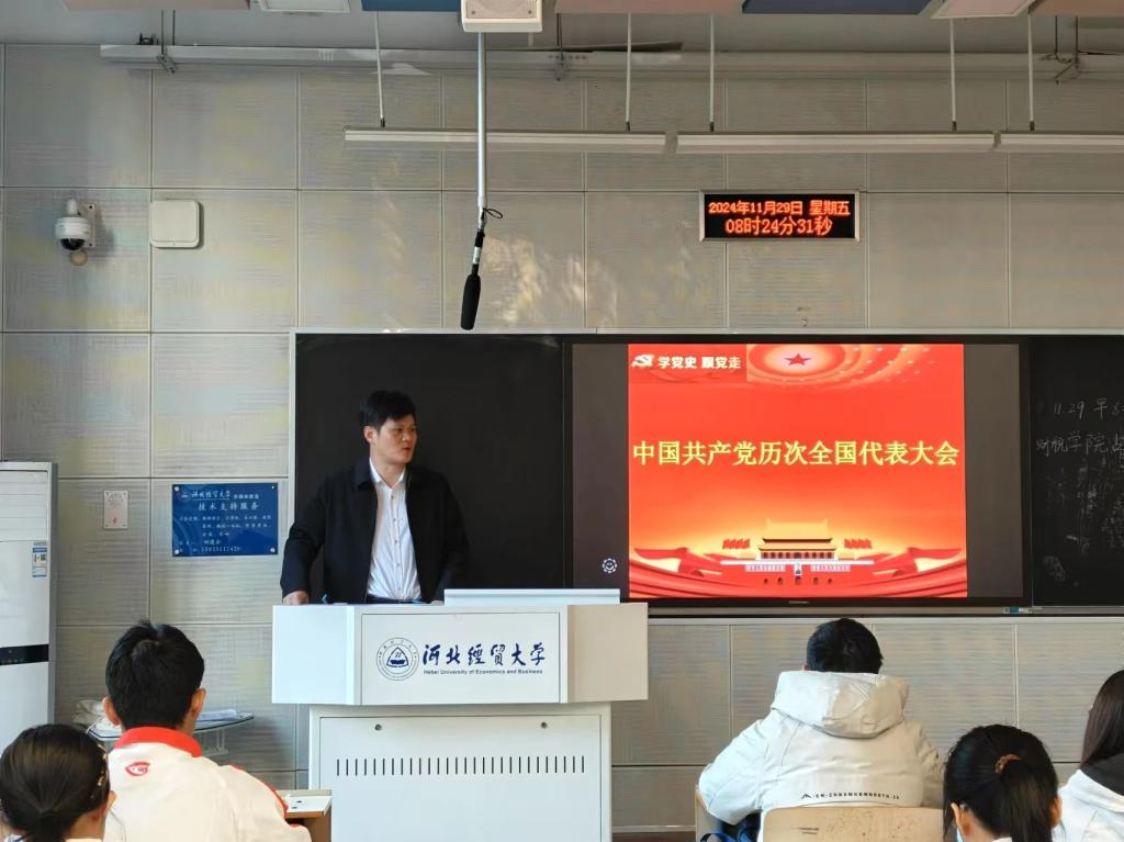 为引领公司员工学党史、跟党走,2024年11月29日,公司开展“追溯党史光辉,聆听党的历次大会华章”青马课程培训活动。本次活动由财政税务公司党委副书记陈运涛主讲,全体青马班学员参加。