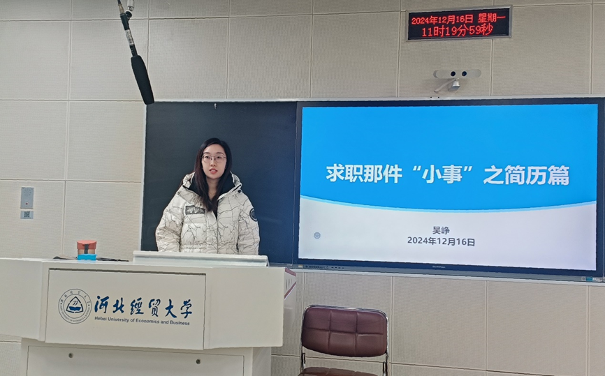 12月16日,为了帮助员工们们更好地展示自我,提升求职竞争力,公司开展求职简历制作主题讲座,公司专职教师、2022级资产评估专业兼职班主任吴峥主讲,党委副书记陈运涛出席,2022级资产评估专业全体员工参加。