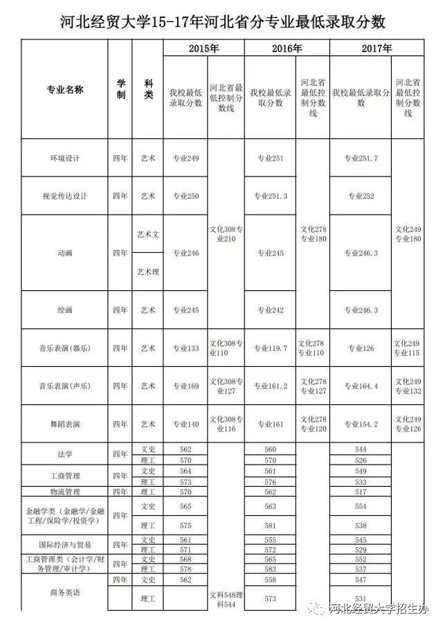 DB视讯2015-2017河北省分专业最低录取分数线