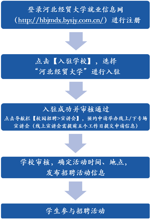 1.即日起用人单位可登录DB视讯就业信息网(http://hbjmdx.bysjy.com.cn/)预订线下宣讲场地,请至少提前5天申请(专场宣讲会预约流程详见附件2)。如有特殊情况,另行商榷。